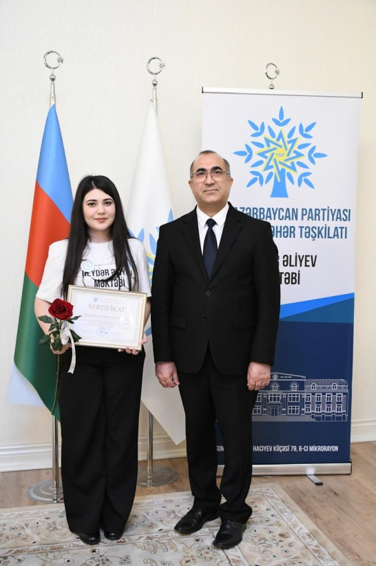 Tədbirin sonunda YAP Sumqayıt şəhər Təşkilatı, Sumqayıt şəhər İcra Hakimiyyəti və Sumqayıt Bələdiyyəsi tərəfindən “Heydər Əliyev məktəbi”nin müdavimlərinə sertifikatlar və xatirə hədiyyələri təqdim olunub. Sertifikatların təqdim edilməsi layihədə fəal iştirak edən gənclərin əməyinə verilən yüksək qiymətin göstəricisi kimi dəyərləndirilib.